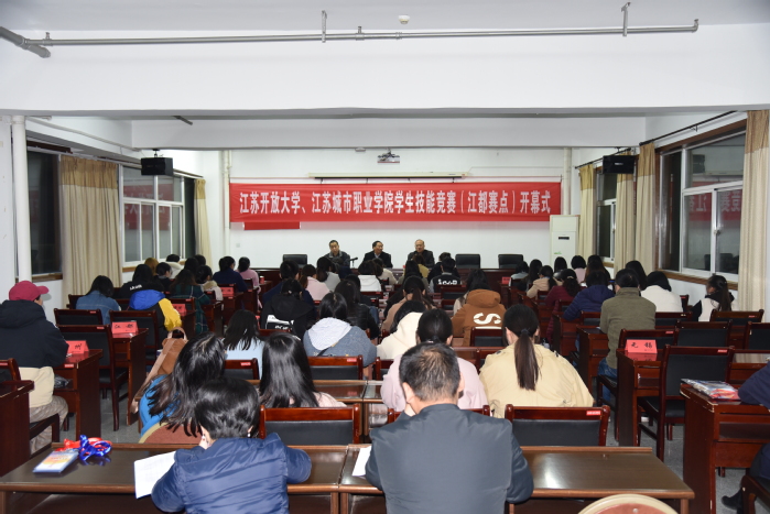 在16日下午举行的开幕式上,江都开放大学副书记张红旗代表承办方对来自全省办学系统的领队、指导老师和参赛同学表示热烈欢迎,并表示将以承办本次大赛为契机,展示江都开放大学办学成果,促进教学与技能的提升,塑造良好形象。随后江苏开放大学教务处处长钱琦对江都开放大学为此次竞赛做出的辛勤工作表示感谢,他强调本次竞赛是在习近平新时代中国特色社会主义思想指导下和在全国教育大会召开后的收官之赛,通过系列竞赛活动的开展进一步提升了各办学系统的凝聚力,推进了各办学系统实践育人工程建设,提高了办学系统综合竞争力、社会声誉和在全国的影响力,最后他预祝参赛的选手获得佳绩。开幕式由实践教学科科长李承敬主持。