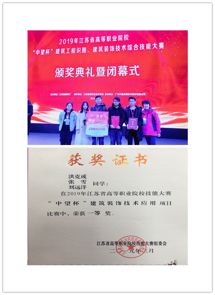2019年3月8日由江苏省教育厅主办,2019年全省高等职业院校技能大赛建筑装饰技术应用赛项在江苏建筑职业技术学院成功举办。全省共40所学校120名选手组队参赛,我校代表队喜获团体一等奖!