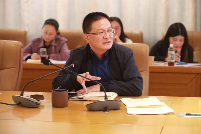校长崔新有从“形势与政策”课的时代背景角度,为参会人员理顺“思政课程和课程思政”之间的逻辑关系,要求大家牢记信仰初心和育人使命,把握教育教学规律,引导学生正确认识4个方面,即世界和中国发展大势、中国特色和世界比较、时代责任和历史使命、远大抱负和脚踏实地,树牢“四个意识”,坚定“四个自信”,做到“两个维护”。他就如何上好本课提出三点要求:一是要加强组织领导,狠抓教学运行与管理。相关职能部门和各学院要明确职责,协调配合,切实保障课程有序运行。二是要遵循“专业精神、法的精神和尚美精神”,做到理性培育与感性教育相结合,规矩意识与人文情怀相统一,增强思政课程的时代感和吸引力。三是全体教师要充分认识到“形势与政策”课所具有的“视野宏阔、博大雄浑、范式多样”的特点,在实施教学过程中,集有效性与艺术性于一体,切实推动习近平新时代中国特色社会主义思想入脑入心。