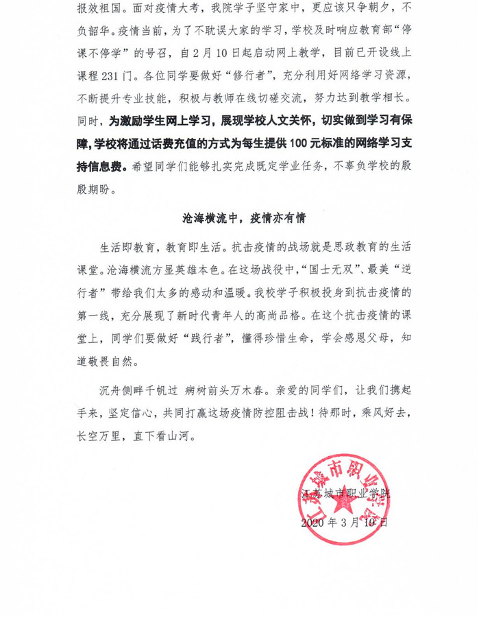 致同学们的一封信