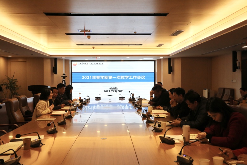 为贯彻落实我省《关于做好高校2021年寒假及春季开学期间教育教学工作的通知》的要求,切实做好疫情防控下本学期的各项教学工作,2月28日上午,我校在定淮门校区召开了2021年春季学期第一次教学工作会议。教务处、学科建设处、信息化建设处、教学质量管理办公室主要负责人及各学院院长、副院长等30余人出席会议。会议由张晓副校长主持。