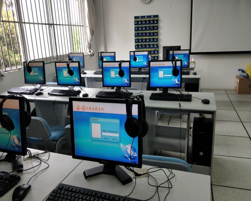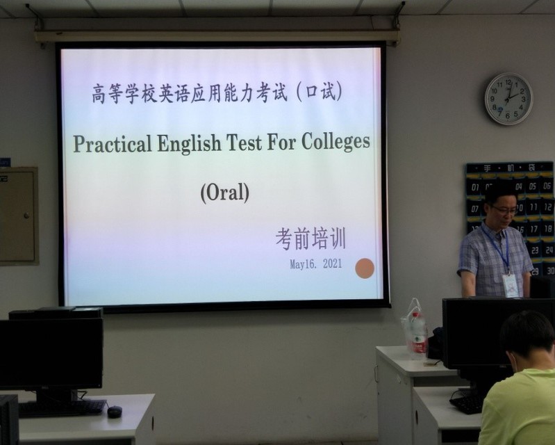 2021年5月16日,我校在古平岗校区实验楼举行了2020—2021学年第二学期高等学校英语应用能力考试(口试)的第一次上机模拟考试。此次模拟考试在2间标准机房内分12场次完成,操作流程完全契合正式考试,旨在让学生们充分熟悉人机交互对话的口语考试形式,以期取得最佳成绩。