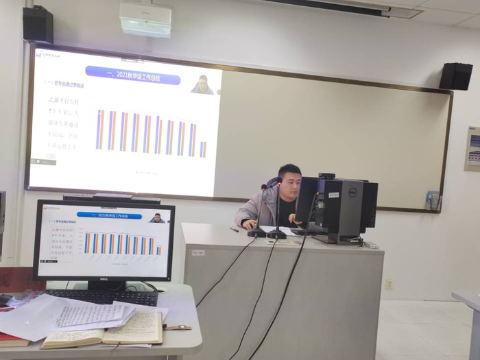 第二阶段会议上,教务处实践教学科副科长秦琼围绕2021年秋学期毕业论文工作总体情况、毕业论文工作规范、知网查重工作建议、2022年春学期毕业设计工作安排与要求等方面对毕业论文课程负责人做了专项培训。随后,钱琦对毕业设计教学工作提出四点要求,一是进一步规范毕业设计工作流程,确保教学全过程平稳有序;二是课程负责人要强化教学团队的指导管理;三是要强化评阅和答辩等环节的实施;四是要强基固本,高质量完成毕业设计教学工作,不断提升人才培养质量和学校综合竞争力。最后,参会教师就2022年春学期毕业论文工作的相关内容进行了研讨与交流。