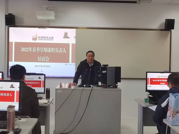 1月18日下午,我校在定淮门校区召开了2022年春学期课程负责人培训会,教务处、教学质量管理办公室负责人和相关工作人员、各学院分管教学的副院长、校本部及办学系统教师200余人参加了本次会议,会议由教务处副处长沈宏主持。