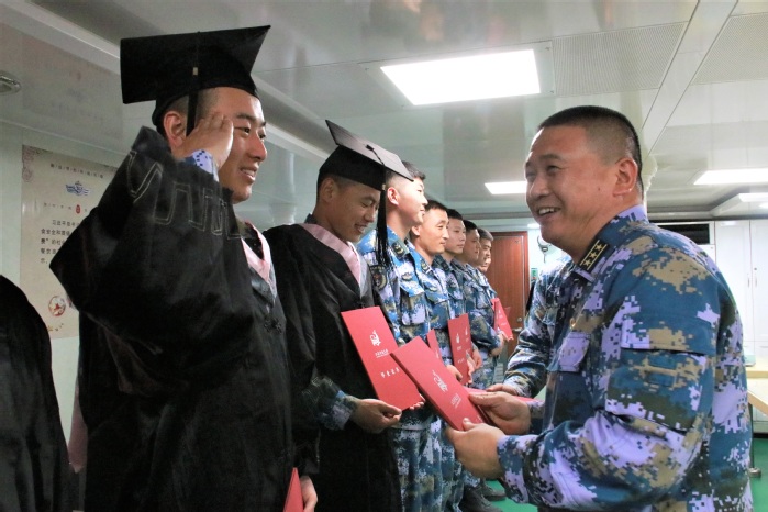 图3 盐城舰舰长为毕业生颁发毕业证书