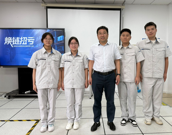 优异成绩的背后,是学校的全面支持和团队的共同努力。备赛期间,耿焕同副校长多次亲临训练现场指导慰问,强调要做好全方位保障,将备赛环节融入教学实践,以竞赛推动教学改革,提升人才培养质量;教务处主动作为,高效协调各类资源、完善配套政策支持;学校办公室、后勤管理处、保卫处等相关职能部门同步跟进,全力做好后勤保障服务;商学院全程紧盯备赛进度,不仅提供优良的训练环境与专业设备支持,辅导员张慧老师更随队协作,时刻关注队员身心状态,及时为大家排忧解难;备赛师生团队则精益求精,反复打磨技术方案、不断优化操作流程,用无数个日夜的坚持为比赛胜利奠定了坚实基础。