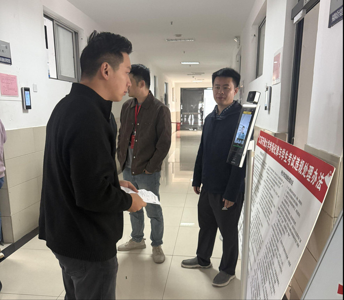 周密部署,保障考试公平科学。耿焕同副校长高度重视学位考试,亲自部署,对考试命题、考试组织以及技术服务保障等方面都提出了严格的要求。考前,教务处牵头召开命题工作会议,基于历年数据对命题方案进行系统优化,科学调整题型、难度与分值,确保试题质量;进一步强化考试管理,全面实施考场视频监控,确保考试全程可追溯;组织召开了巡考培训会,明确巡考规范与纪律要求,重点加强对身份核验、高科技作弊及考场监控等环节的巡查力度,全力营造规范有序、公平公正的考试环境;联合数字化建设处,提前完成网络优化与压力测试,提供专业技术保障,为网考保驾护航。